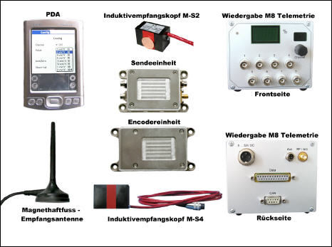 Neu entwickelte 8 Kanal Universal - Miniatur- Telemetrie zur Messung von Thermoelement und DMS - Messungen. Extrem robustes u. klei- nes Messsystem staub- und wasserdicht aus- führbar.Die Meßdatenübertragung des Systems funktioniert konsequent berührungslos und ist somit wartungs- und verschleißfrei.