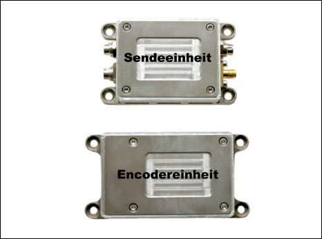 Programmierbare Miniaturtelemetrie: Mobileinheit bestehend aus En- coder- und Sendemodul. |